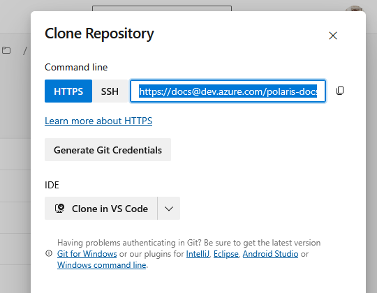 How to connect a Polaris project to a repository in Azure DevOps.