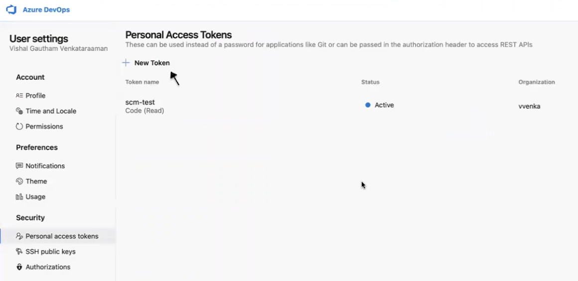 - Click Create. Note: For more information on creating access tokens, see the documentation for Azure DevOps (link).