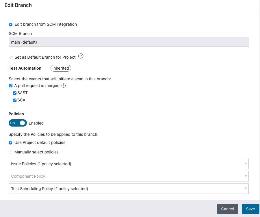 How to add a branch to your SAST & SCA project, or modify a branch that already exists.